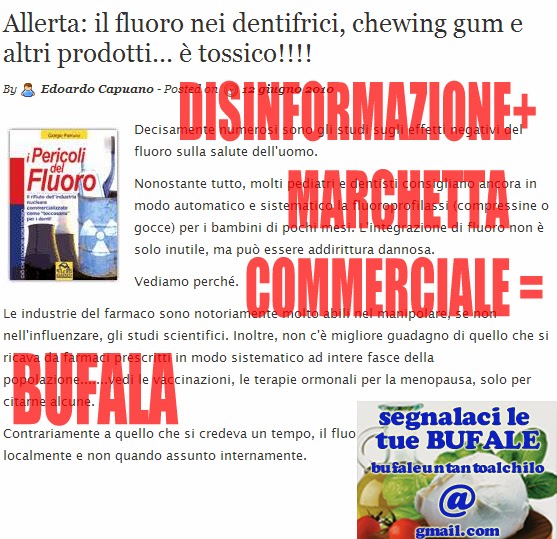 A chi vi dice che vi sono nuovi studi in merito fate presente che gli studi attuali sono sufficienti, visto che esistono paesi in cui la fluorizzazione dell’acqua in maniera artificiale si pratica dagli anni 30 del secolo scorso.
