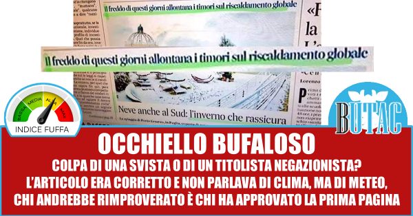 “Una topica davvero incredibile. Era da anni, per fortuna, che non si leggevano più su un giornale italiano sciocchezze simili e confusione tra clima e meteo. Il riscaldamento globale si manifesta in un aumento delle temperature medie: l’aumento dell’intensità o della frequenza degli eventi meteo estremi è un sintomo del cambiamento climatico, che purtroppo è una realtà sempre più allarmante”.