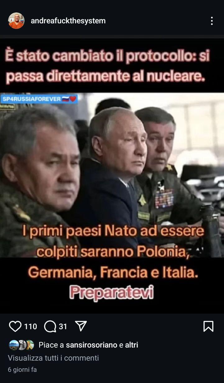 È stato cambiato il protocollo: si passa direttamente al nucleare. I primi paesi Nato ad essere colpiti saranno Polonia, Germania, Francia e Italia.