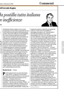 Infatti Corrado Augias il 30 gennaio 2020 ha scritto nella risposta a una lettera, e senza rendersene conto, di essere purtroppo caduto in una delle trappole della rete, il phishing. Nella giornata di sabato in tanti hanno preso (bonariamente, nella maggior parte dei casi) in giro Augias, ammetto che ho trovato la presa in giro piuttosto fuori luogo. Ho svariati contatti (alcuni over 70) che senza essere totalmente incapaci nell’utilizzo della rete cascano comunque in alcune di queste truffe, nessuno gli ha insegnato cosa siano, i media che potrebbero aiutare preferiscono pubblicare le veline truffaldine di altri soggetti invece che dedicarsi alla vera informazione utile.