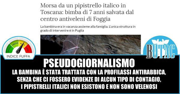 I titoli che parlano di salvataggio fanno solo sensazionalismo, la bimba si è graffiata una settimana fa, e una volta a Livorno, pur con bambina in ottime condizioni di salute, i genitori hanno pensato fosse buona cosa farla visitare e controllare in seguito al graffio. A scopo precauzionale l’ufficio Igiene e prevenzione di Livorno ha predisposto l’anti-rabbica, perché è quello che nel caso il pipistrello può trasmettere all’essere umano (in rari casi).