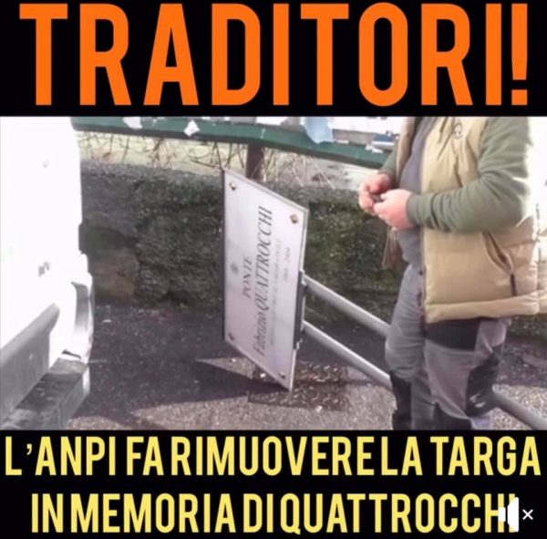 Traditori – l’ANPI fa rimuovere la targa in memoria di Quattrocchi