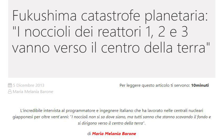 Tenendo a mente il tema centrale dell’articolo: “i noccioli non si sa dove siano, ma sembra che abbiano cominciato a fare come trivelle scatenando una serie di reazioni a catena e si stanno dirigendo verso il centro della terra! Nessuno sa cosa potrebbe accadere!”
