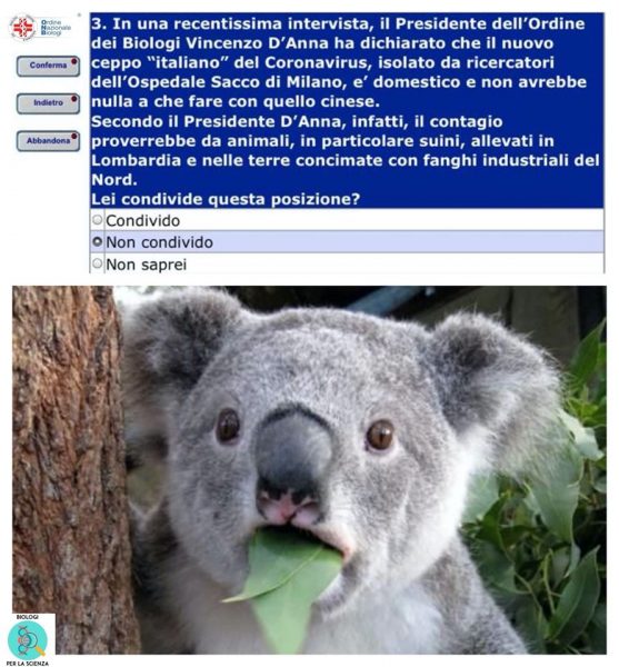 A marzo 2020 l’Ordine Nazionale dei Biologi manda ad alcuni iscritti un sondaggio da compilare online. Tra le domande appare questa: