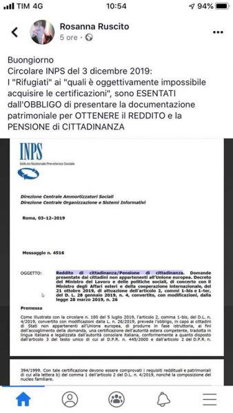 Avete letto con attenzione? Queste persone devono produrre gli stessi documenti di un cittadino italiano, venendo da un Paese straniero con cui l’Italia non ha alcun tipo di accordo/trattato, ed essendo rifugiati politici non hanno una documentazione patrimoniale che abbia qualche valore. Se abbiamo accettato il suo status di rifugiato significa che nel suo paese è un perseguitato. Normale che non rilascino informazioni patrimoniali su uno che è arrivato da noi fuggendo dalla propria terra. Il decreto legge a sua volta fa riferimento a una legge entrata in vigore quando le parti erano invertite. Curioso, non trovate? La circolare dell’INPS non cambia nulla agli effetti dei decreti, il Reddito di cittadinanza può essere richiesto da soggetti che siano: