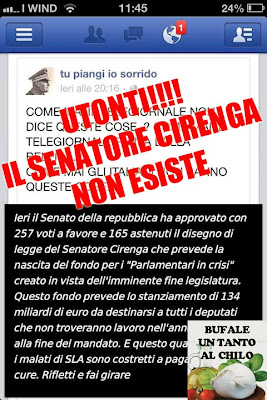 SIETE DEGLI UTONTI. Il senatore CIRENGA è un personaggio FITTIZIO, non ESISTE! Non ESISTE alcun fondo “Parlamentari in crisi”!