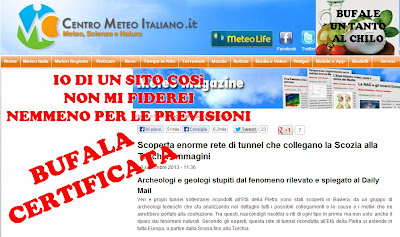 Questa notizia mi ha fatto davvero scompisciare dalle risate, ma siamo folli? Ma chi è così folle da poterla scrivere e chi è così uTonto™ da poterci credere? Non lo so, ma il “Centro Meteo Italiano” crede sia una notizia degna e (come tante altre di questo FINTO sito di meteorologia, disinformazione e allarmismi) la pubblica senza citare nessuna fonte diretta, senza riportare nessuna VERA dichiarazione… oltretutto partendo non da tunnel in Scozia, ma da una rete di tunnel scoperta (non ieri, ma nel 2011) in Baviera.
