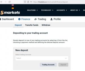 Ho cliccato dove richiesto e sono entrato su 5markets.co, sito colombiano di nessuna affidabilità, dove mi viene chiesto di fare un deposito.