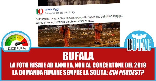 Ma quello che a noi interessa è un’altra cosa: davvero quella foto è Piazza San Giovanni a Roma dopo il concertone del Primo maggio? No, purtroppo per Armando Mannocchia, responsabile di Imola Oggi, nella foto è molto evidente il ritratto di Papa Giovanni Paolo II appeso tra le colonne della facciata di San Giovanni in Laterano.