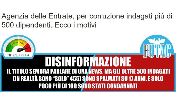 Ma sostenere che si trattasse di 562 indagati, ricavati facendo somma tra indagati e condannati, significa non sapere far di calcolo, leggere le fonti e verificarle… Titolare come se ci fossero nuove indagini su 562 dipendenti dell’Agenzia è disinformare il lettore. L’idea che mi sono fatto è che la strategia sia sempre la stessa, disinformare per indignare, abbassando sempre di più la fiducia nelle istituzioni. Io onestamente fossi al governo sarei preoccupato da questo genere di comunicazione, da quanti siti continuano imperterriti a diffonderla. L’information disorder è un problema serio. Prenderlo sotto gamba è da sciocchi.