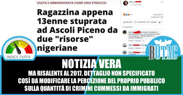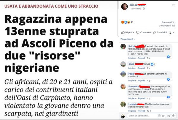 Per evitare di raccontare che il fatto, vero, risale a ottobre 2017. Una notizia di due anni fa condivisa come se fosse fresca, evitando link a qualsiasi articolo di approfondimento. Link che sarebbero serviti perlomeno a inquadrare i contorni del crimine e magari a scoprire che i giovani erano stati identificati, arrestati e anche condannati. Ma perché spiegare queste cose quando si può rimettere in giro la notizia facendo finta che sia una news? So già che alcuni di voi mi diranno, eh vabbè, però la notizia è vera. E avete solo ragione, la notizia è vera, e questo va chiarito; ma facendola girare più volte, soprattutto tramite screenshot, chi la vede, non riuscendo a datarla, crede che siano più crimini uguali o simili, e non trovandone traccia sui giornali si convince pure che sia in atto un tentativo di censurare le notizie che hanno gli immigrati come protagonisti negativi. Non sto difendendo gli autori della violenza, che sono appunto già stati condannati, ma sono da condannare non in quanto stranieri, ma criminali.