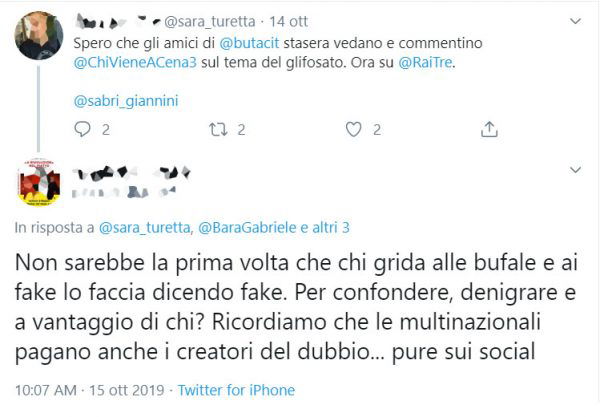 Non sarebbe la prima volta che chi grida alle bufale e ai fake lo faccia dicendo fake. Per confondere, denigrare e a vantaggio di chi? Ricordiamo che le multinazionali pagano anche i creatori del dubbio… pure sui social