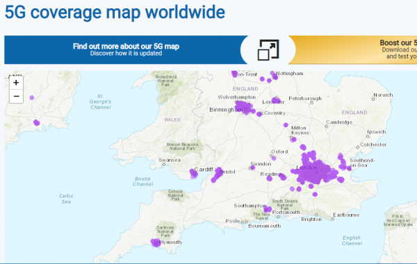 Il 5G in Inghilterra possiamo dire che è diffuso principalmente nella zona di Londra.
