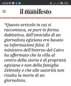 Il Manifesto ha poi rimosso il suo articolo, sostituendolo con la seguente dicitura: