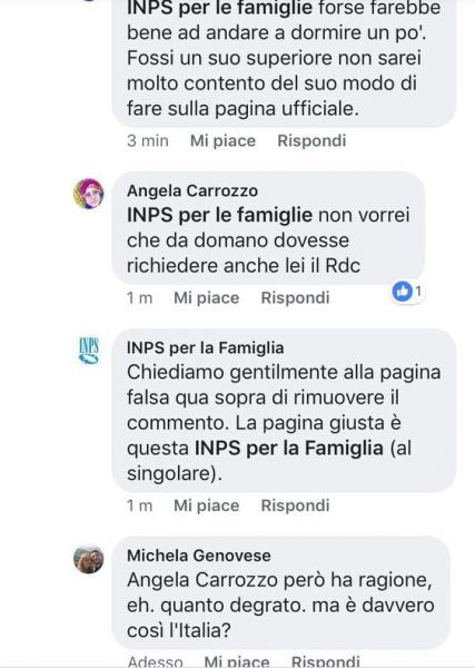 Ci sono due pagine che ieri hanno lavorato moltissimo a livello social media manager, due pagine molto simili fra loro. Una però è una pagina ufficiale, INPS per la famiglia, l’altra è una pagina troll, INPS per le famiglie.