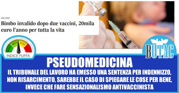 Quei due punti in cui si parla di “assenza” andrebbero tradotti per il lettore finale. Tradotti in maniera chiara. Il giudice, non avendo elementi sufficienti che dimostrino alcunché, ha deciso di dare un risarcimento minuscolo (20mila euro l’anno per una disabilità al 100% non sono niente) per levarsi di torno velocemente il problema. Come viene fatto regolarmente da tanti giudici del lavoro. Con sentenze che nove volte su dieci vengono ribaltate successivamente dai ricorsi che vengono regolarmente presentati dal Ministero della Salute, come abbiamo spiegato più volte.