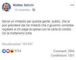 Matteo Salvini evidentemente sa benissimo che il suo pubblico online non approfondirà e si fiderà delle sue parole. Questo è avvelenare il pozzo, me lo posso aspettare dai suoi follower, ma se a farlo è un politico che mira a governare il Paese onestamente sono molto a disagio.