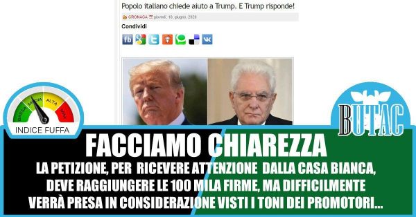 Giovedì 18 giugno è comparso su una pagina del sito Imola Oggi, sito che i nostri lettori già conoscono, un articolo dal titolo “Popolo italiano chiede aiuto a Trump. E Trump risponde!”, a firma Gianmarco Landi, in cui si riferisce che