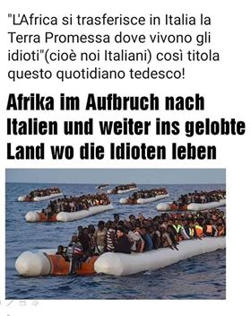 L’Africa si trasferisce in Italia la terra promessa dove vivono gli idioti.