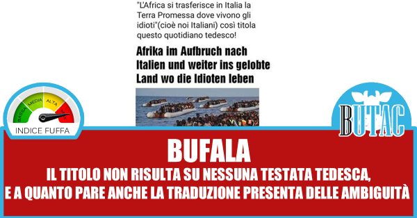 Ci avete segnalato quest’immagine che da alcuni giorni circola in rete, sostenendo che sia il titolo scelto da un giornale tedesco per parlare dell’Italia: