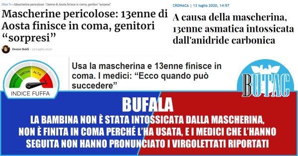 Facciamo chiarezza, la bambina non è andata in coma a causa della mascherina, e non è stata in coma due settimane. La bambina ha avuto un pesante attacco d’asma di cui soffre normalmente, è stata intubata, e per farlo, come da prassi, è stata sedata ed è rimasta così per due giorni, non venti, non dieci, due giorni, poi le sue condizioni si sono stabilizzate ed è stata tolta dalla terapia intensiva e svegliata.