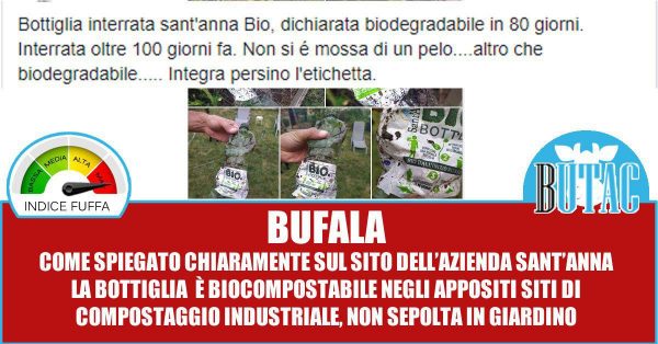 Cerchiamo di spiegare le cose per bene. Il contenitore che si vede nell’immagine è una bottiglia bio prodotta da Sant’Anna; intanto va specificato che non solo la bottiglia è biodegradabile ma, come spiega Sant’Anna sul suo sito: