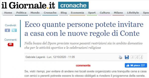 Il Giornale: Ecco quante persone potete invitare a casa con le nuove regole di Conte
