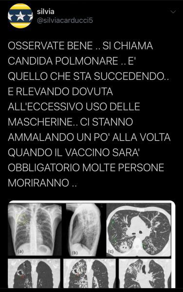 Silvia: Osservate bene .. si chiama candida polmonare .. è quello che sta succedendo e rlevando dovuta all’eccesivo uso delle mascherine.. ci stanno ammalanado un po’ alla volta quando il vaccino sarà obbligatorio molte persone moriranno.
