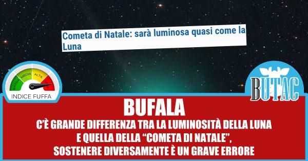 Se siete cattolici praticanti capisco benissimo che sia molto suggestiva l’idea di una cometa natalizia, ma sostenere il fatto che abbia una luminosità simile a quella della Luna è un grave errore.