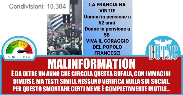 A chi crea questi meme i punti esclamativi piacciono moltissimo, è evidente, ma quanto di ciò che è riportato nell’immagine è corretto? Vediamo di capirci: al momento gli scioperi in Francia sono ancora in corso, e non è affatto vero che si sia vinto alcunché.