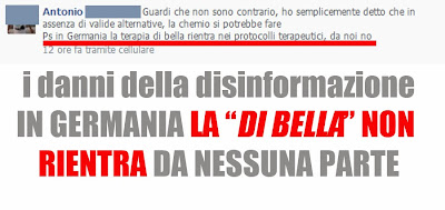 Che tradotto in parole povere vorrebbe dire, in Italia non c’è riconoscimento alla cura Di Bella quindi ci tocca la chemio, in Germania ci sarebbero alternative.