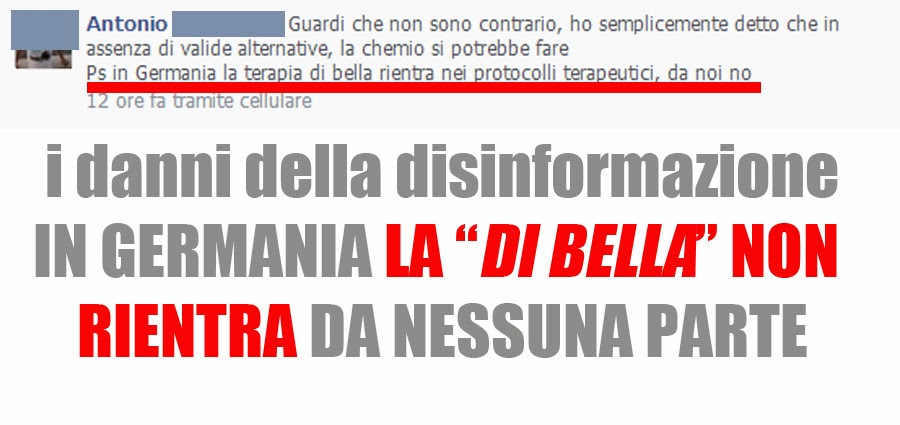 Che tradotto in parole povere vorrebbe dire, in Italia non c’è riconoscimento alla cura Di Bella quindi ci tocca la chemio, in Germania ci sarebbero alternative.