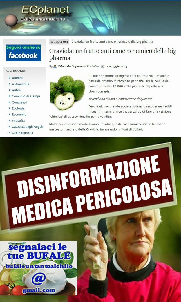 La graviola non ha proprietà anticancro come quelle descritte, anzi ci sono rischi che possa fino esser dannosa (pur riconoscendo alcune capacità interessanti) per chi vuole un parere super partes vi rimando alla pagina dell‘Associazione Italiana Ricerca sul Cancro (AIRC) che sintetizza così il concetto: