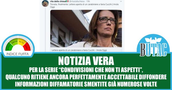 Io spero che qualcuno che conosce Rita Dalla Chiesa legga BUTAC e le spieghi che magari la lettera è anche stata scritta da qualche carabiniere, ma che il problema sono le cose che vengono dette nella lettera, cose sbufalate da noi debunker e spiegate durante i processi che si sono tenuti. Cose che non vanno condivise.