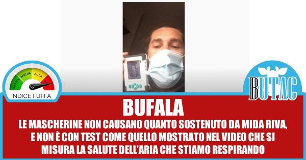 Siamo di fronte a una di quelle prese in giro che dimostrano purtroppo il livello di scarso spirito critico presente nel nostro Paese. Nel video vediamo Mida Riva infilarsi il tester per la CO2 sotto la mascherina, respirare e vedere quanto s’innalzano i valori dell’anidride carbonica.