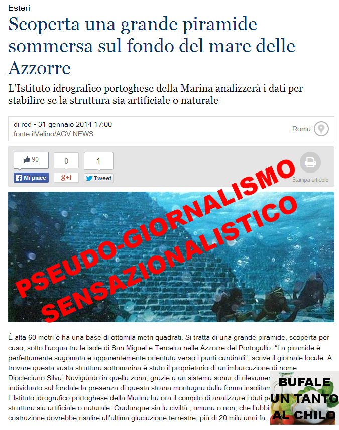 Sul sito IlVelino.it, è comparsa la notizia riportata nell’immagine: avrebbero scoperto una piramide sommersa tra le isole San Miguel e Terceira, nelle Azzorre.