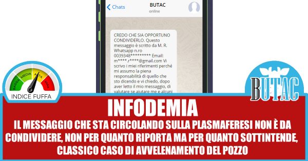 Non so quante volte ve l’ho ripetuto: quando ricevete un messaggio di qualsivoglia tipo che non riporta fonti di quanto afferma l’unica cosa che dovete fare è cestinarlo, e magari spiegare all’amico che ve l’ha mandato perché questa roba contribuisce solo alla grave infodemia in corso. Per aiutarvi sfrutto un altro post, purtroppo firmato in maniera semi-anonima, con domande che ritengo molto utile porre a chiunque vi giri la storia del plasma in qualsivoglia forma: