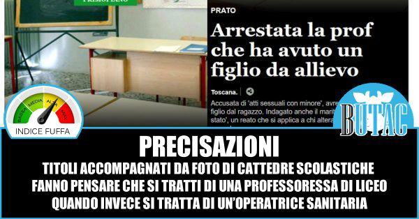 E mi fermo, ma se cercate sono tante le testate che hanno ripreso lo stesso tipo di narrazione. Sia chiaro, è vero, una donna di 31 anni è stata arrestata per aver avuto un figlio da un ragazzo minorenne. Ma era una prof? Riporto da il Corriere della sera: