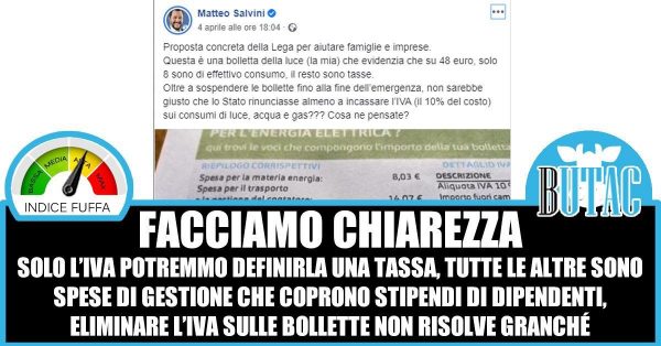 Se anche questa proposta venisse messa in pratica, il risparmio dell’IVA sulle bollette per il comune cittadino sarebbe somma abbastanza ridotta, non credo che possano essere quegli euro (relativamente pochi) a cambiare la situazione di disagio data dal lockdown. Come non lo sono probabilmente i 600 euro dati agli imprenditori nonostante si stia parlando di cifre più consistenti, ma stiamo tutti attendendo altre misure, che speriamo verranno via via. Per ora, non si fosse capito, non siamo ancora fuori della tempesta. Quei soldi servono allo Stato per cercare di tappare il buco, per aiutarci – come comunità – a uscire da quella che sarà una crisi su scala mondiale.