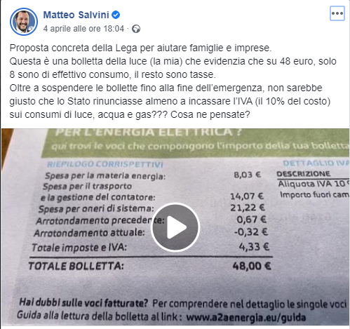 Questa è una bufala, la bolletta che Salvini mostra riporta: