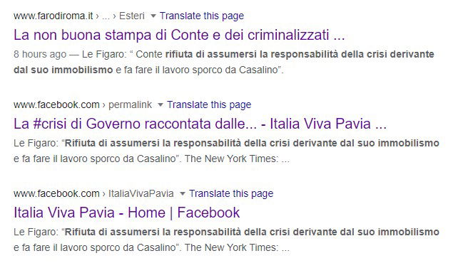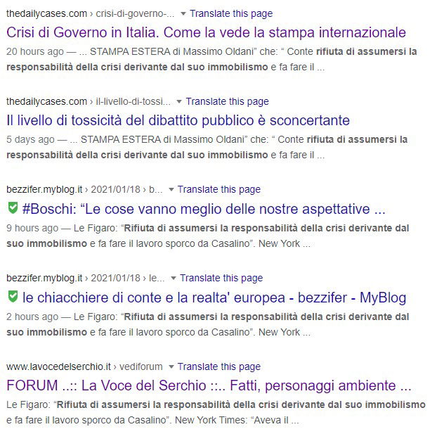 Ci avete segnalato che su WhatsApp e su alcuni siti internet, nelle ultime ore, è stata diffusa quella che viene chiamata “Rassegna Stampa Estera di Massimo Oldani”. Un elenco di citazioni da testate estere che si sarebbero occupate della nostra crisi di governo.
