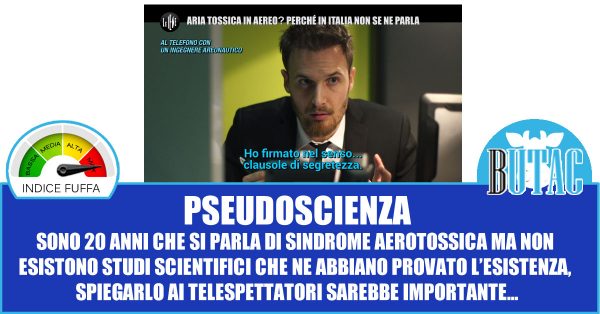 Avevo visto di sfuggita alcune segnalazioni su questa storia passata da Le Iene, ma la settimana scorsa avevo deciso di non parlarne. Su BUTAC avevamo già un articolo che tratta l’argomento, e credevo che bastasse e avanzasse. La cosa interessante è che l’articolo su BUTAC risale a quattro anni fa, quando a mettere in circolazione le sciocchezze della sindrome aereotossica era il Re dei complottari italiani, per gli amici Mr Nò.
