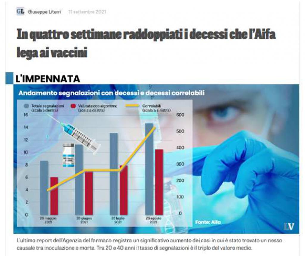 In quattro settimane raddoppiati i decessi che l’Aifa lega ai vaccini