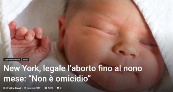 Sono tante le testate e i blog che hanno ripreso la notizia sulla nuova legge sull’aborto approvata a New York nei giorni scorsi, qui ad esempio vedete la copertina di Primato Nazionale: