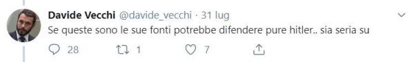 Quello che mi ha fatto sorridere è il fatto che un giornalista, un direttore di testata, invece che rispondere nel merito delle critiche abbia scelto di denigrare il nostro blog. Non stiamo parlando di un anonimo sui social, ma di un soggetto che sta uscendo in libreria con un volume di giornalismo investigativo dal titolo: Il caso David Rossi, il suicidio imperfetto del manager Monte Paschi di Siena. Io onestamente dopo un commento come quello non mi sento di comperare il suo libro: avrà fatto ricerche approfondite? Non posso saperlo, e leggere un intero libro con la necessità di verificare ogni singola affermazione che viene fatta non rientra tra i miei hobby preferiti. Magari è un ottimo libro eh, ma il fatto che Vecchi abbia risposto così a Melania mi fa capire che lui il mio articolo manco l’ha aperto. E questo non va bene, non va bene mai. Se si sceglie di commentare un link prima occorre averlo letto (e compreso). Scegliere invece la strada più semplice con la Reductio ad Hitlerum (o ancor meglio la Legge di Godwin) per denigrare chi è dall’altra parte è invece segno che non si hanno argomenti con cui ribattere. E questo è male.