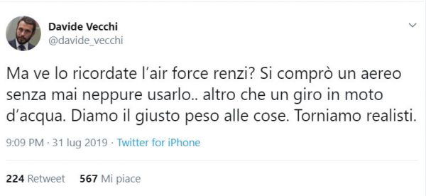 Ma ve lo ricordate l’air force renzi? Si comprò un aereo senza mai neppure usarlo… altro che un giro in moto d’acqua. Diamo il giusto peso alle cose. Torniamo realisti.