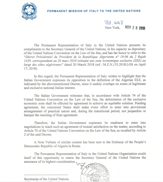 La sottolineatura è mia, per evidenziarvi la frase chiave che dovrebbe dimostrare che qui di approfondimento ne è stato fatto poco, pochissimo. Non è affatto vero che l’operazione dell’Algeria è emersa qualche settimana fa. Si tratta di qualcosa di noto e monitorato anche dall’Italia sin dal 2018, come dimostrano gli incartamenti burocratici riportati sul sito delle Nazioni Unite.
