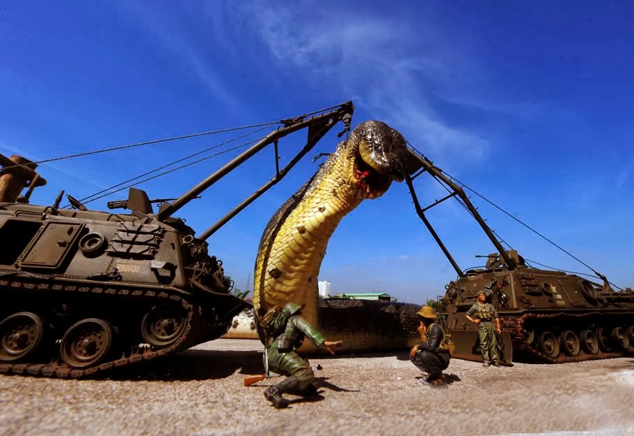 Postato per la prima volta nel 2010 su un forum di studenti IT vietnamiti e realizzato (ovviamente) con serpente finto, modellini e soldatini di plastica…