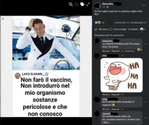 Sulla bacheca dove l’ho trovato la confusione è evidente, vi si trovano sia novax che ridono che novax che rispondono al post in maniera seria, come Ghigo: