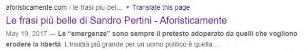 Purtroppo non riportano nessuna fonte da cui sarebbero estrapolate (cosa che invece fanno per tante altre frasi dello stesso Pertini). Quindi continuo a cercare. La trovo su altri blog tipo Il Giardino degli Illuminati o Uomo Qualunque. Nessuno che ne riporti una fonte verificabile. La frase è messa lì, firmata Sandro Pertini, ma quando l’abbia detta è impossibile da sapere.
